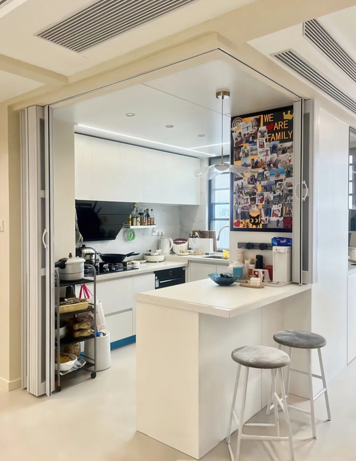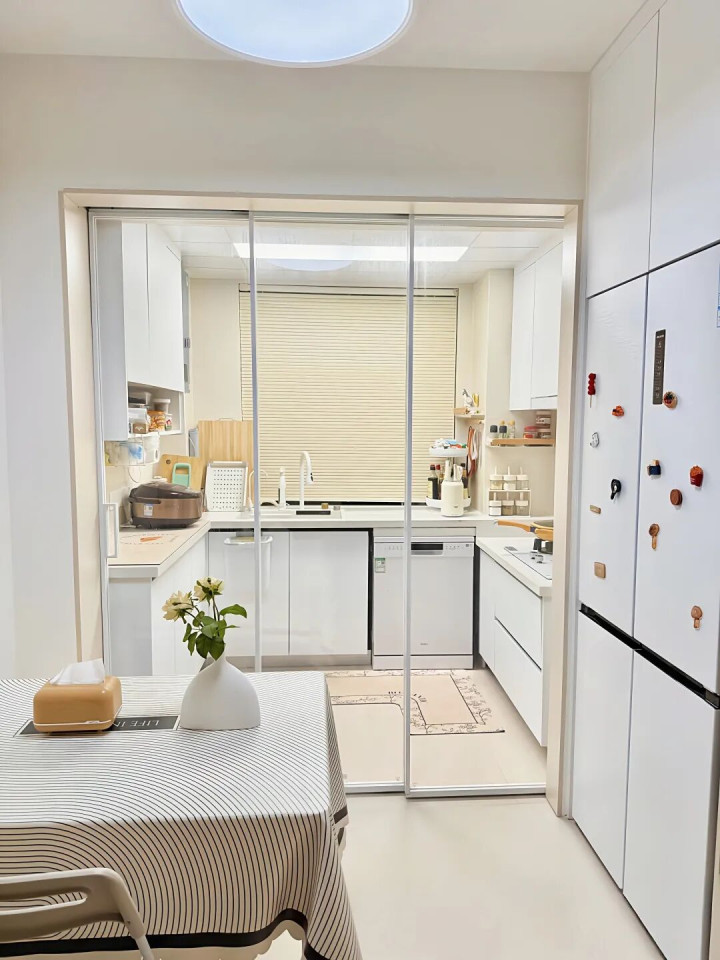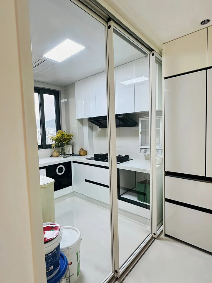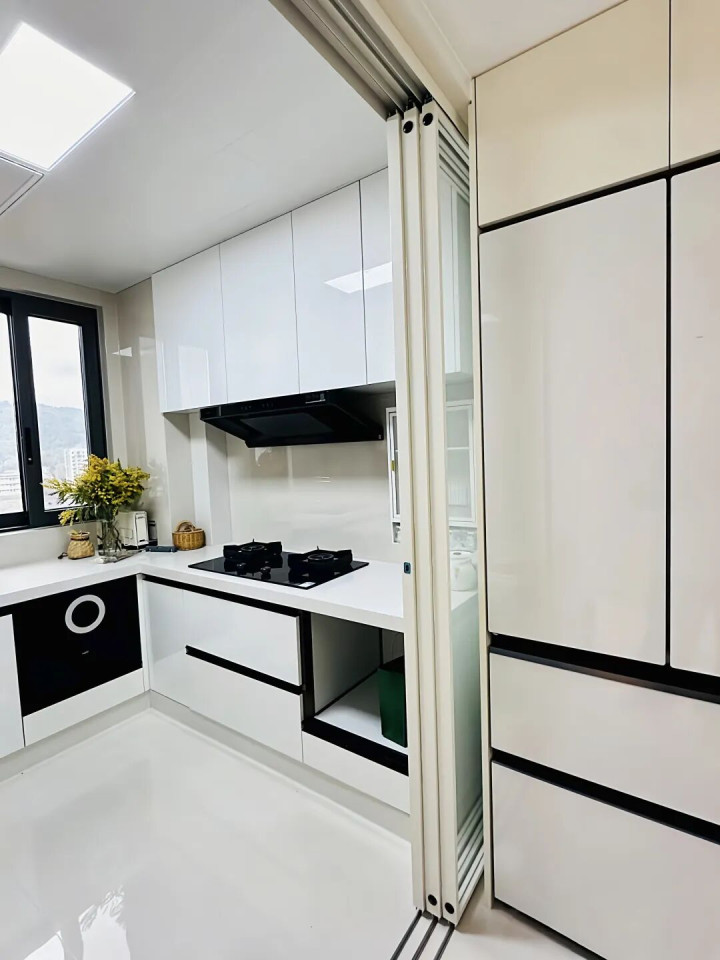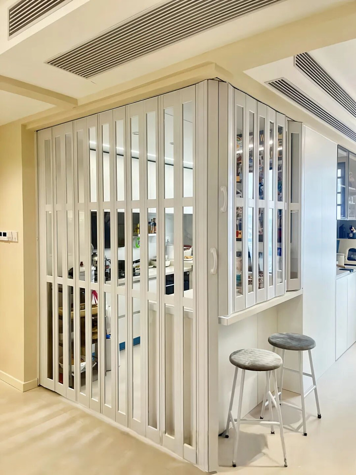 此外,如果我们平时做饭不多的话,折叠门简直就是厨房的隐形大侠——它可以藏起来,完全不占地儿,真是省心又省力。
