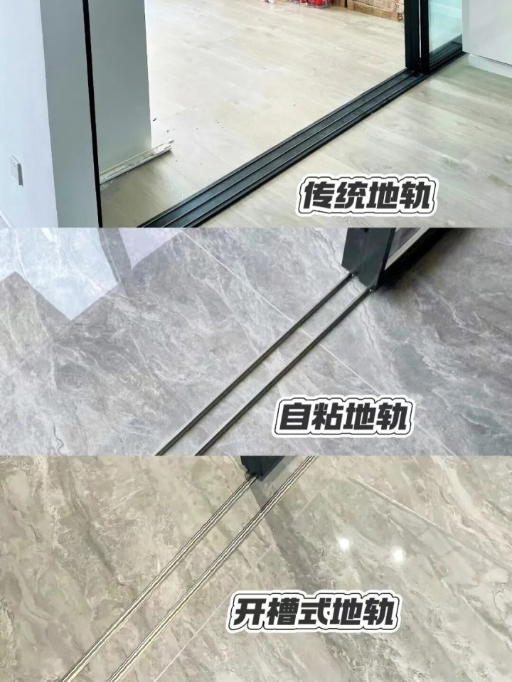 推拉门主要分三大阵营:吊轨式、地轨式和开槽式地轨。